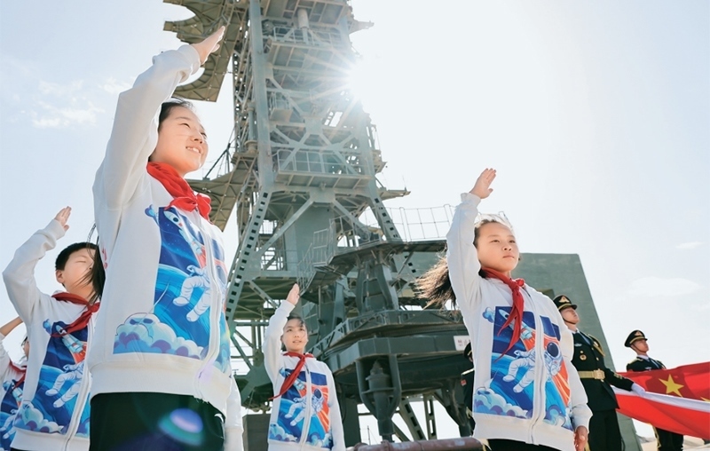 少先隊是建設社會主義和共產(chǎn)主義的預備隊。廣大少先隊員在少先隊這所大學校里立志向、修品行、練本領,從小培養(yǎng)熱愛黨、熱愛祖國、熱愛人民的情懷,展現(xiàn)出朝氣蓬勃的精神風貌。2024年4月24日是第九個“中國航天日”,“紅領巾愛祖國——我心中的五星紅旗”主題活動在中國酒泉衛(wèi)星發(fā)射中心東方紅衛(wèi)星發(fā)射場舉行。圖為當日,來自內(nèi)蒙古、甘肅、四川等地的少先隊員在中國酒泉衛(wèi)星發(fā)射中心東方紅衛(wèi)星發(fā)射塔架下敬隊禮。 新華社記者 金立旺/攝