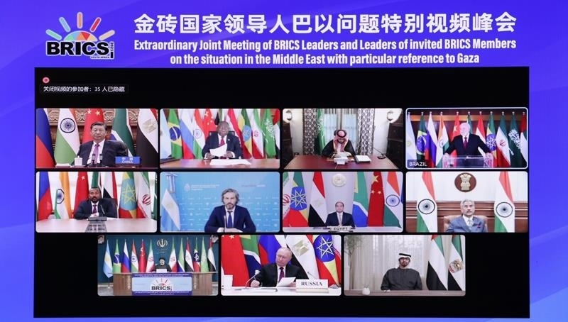 去年11月,金磚國家領(lǐng)導(dǎo)人巴以問題特別視頻峰會(huì)召開,與會(huì)領(lǐng)導(dǎo)人就應(yīng)對(duì)巴以新一輪沖突造成的挑戰(zhàn)并持續(xù)推動(dòng)巴以問題公正持久解決展開交流,協(xié)調(diào)立場,發(fā)出呼吁,達(dá)成共識(shí),并采取積極行動(dòng),發(fā)出清晰的正義之聲、和平之聲。