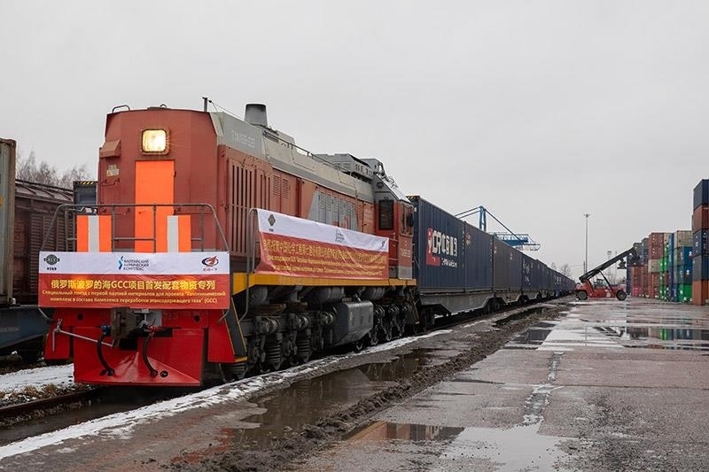 △2021年3月,由中國成都首發(fā)至俄羅斯圣彼得堡市的中歐班列抵達(dá)圣彼得堡舒沙雷火車站。
