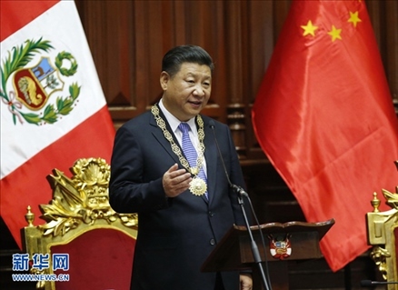 當(dāng)?shù)貢r(shí)間2016年11月21日,國家主席習(xí)近平在秘魯國會發(fā)表題為《同舟共濟(jì)、揚(yáng)帆遠(yuǎn)航,共創(chuàng)中拉關(guān)系美好未來》的重要演講。新華社記者 鞠鵬 攝