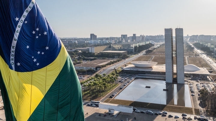 這是2024年7月16日在巴西首都巴西利亞拍攝的國會大廈(無人機(jī)照片)。新華社記者 王天聰 攝