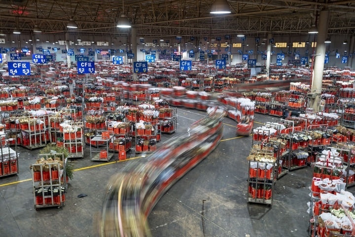 2023年1月31日,臺車在昆明國際花卉拍賣交易中心運(yùn)輸鮮花。新華社記者 陳欣波 攝