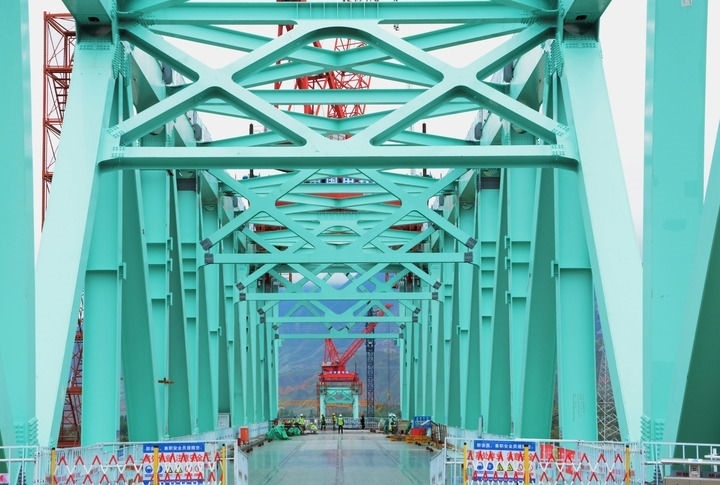 2024年9月5日,工人在川青鐵路重點(diǎn)工程尖扎黃河特大橋現(xiàn)場施工。川青鐵路是我國“八縱八橫”高速鐵路縱向主通道蘭(西)廣通道的重要組成部分。新華社記者 王浡 攝
