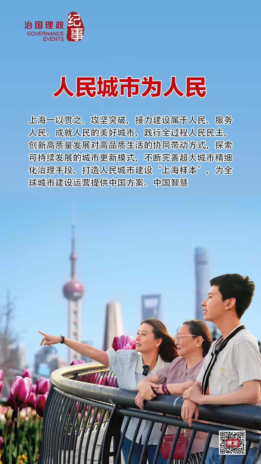 ◇上海一以貫之、攻堅(jiān)突破,接力建設(shè)屬于人民、服務(wù)人民、成就人民的美好城市,踐行全過程人民民主,創(chuàng)新高質(zhì)量發(fā)展對(duì)高品質(zhì)生活的協(xié)同帶動(dòng)方式,探索可持續(xù)發(fā)展的城市更新模式,不斷完善超大城市精細(xì)化治理手段,打造人民城市建設(shè)“上海樣本”,為全球城市建設(shè)運(yùn)營提供中國方案、中國智慧。
