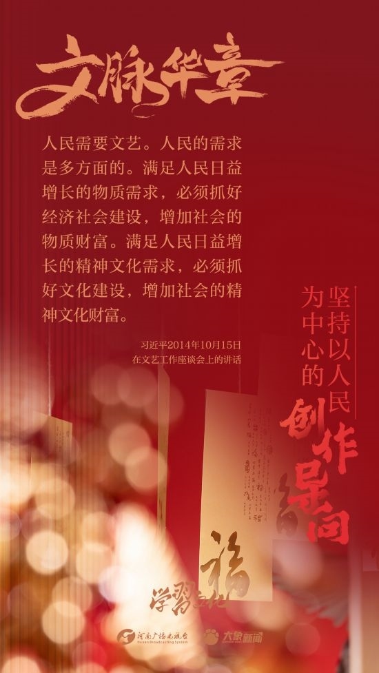 黨的十八大以來,習(xí)近平總書記高度重視文藝工作,多次作出重要講話重要指示,對(duì)廣大文藝工作者寄予殷切期望,勉勵(lì)廣大文藝工作者堅(jiān)持以人民為中心的創(chuàng)作導(dǎo)向,把握時(shí)代脈搏,承擔(dān)時(shí)代使命,聆聽時(shí)代聲音,勇于回答時(shí)代課題。