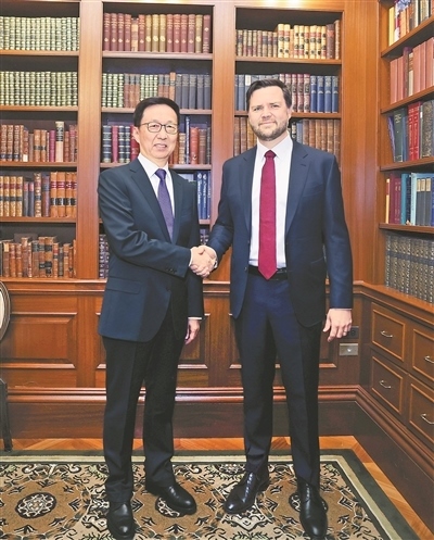 會見萬斯時(shí),韓正首先轉(zhuǎn)達(dá)習(xí)近平主席對特朗普總統(tǒng)的問候,并祝賀萬斯當(dāng)選。韓正表示,近日習(xí)近平主席同特朗普總統(tǒng)進(jìn)行了重要通話,就下階段中美關(guān)系發(fā)展達(dá)成許多重要共識。中方愿同美方一道,堅(jiān)持元首外交的戰(zhàn)略引領(lǐng),落實(shí)好習(xí)近平主席同特朗普總統(tǒng)達(dá)成的重要共識,推動中美關(guān)系穩(wěn)定、健康、可持續(xù)發(fā)展。