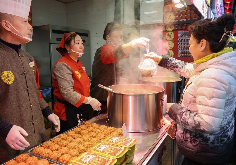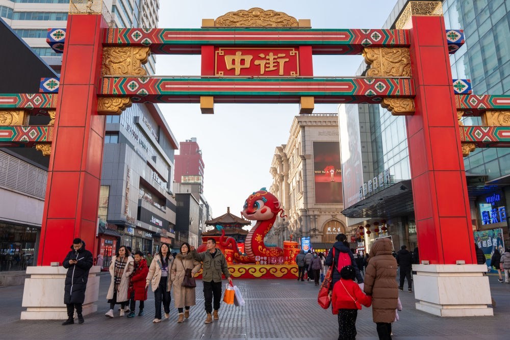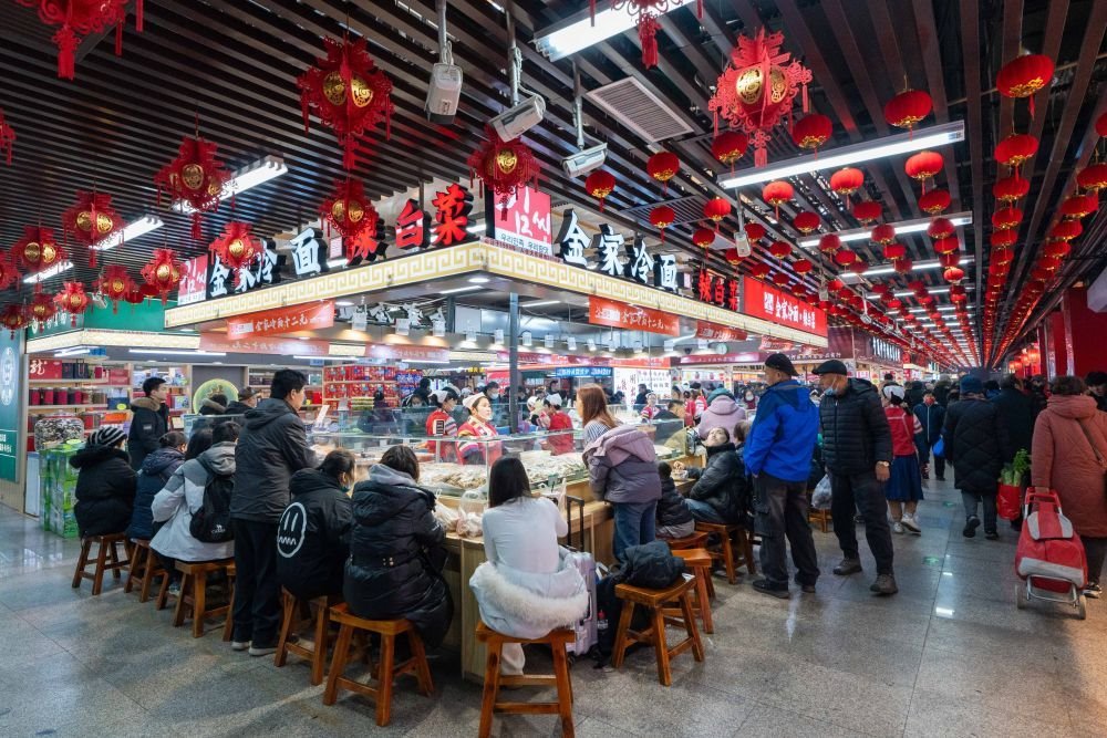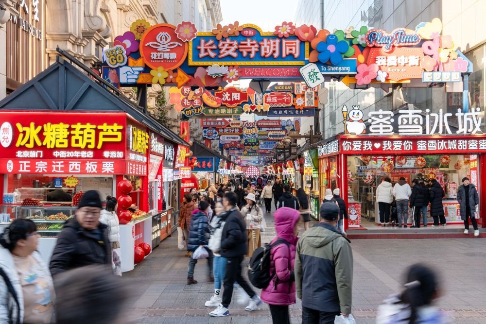 2025年1月22日,游客在沈陽中街長(zhǎng)安寺胡同小吃街游玩。