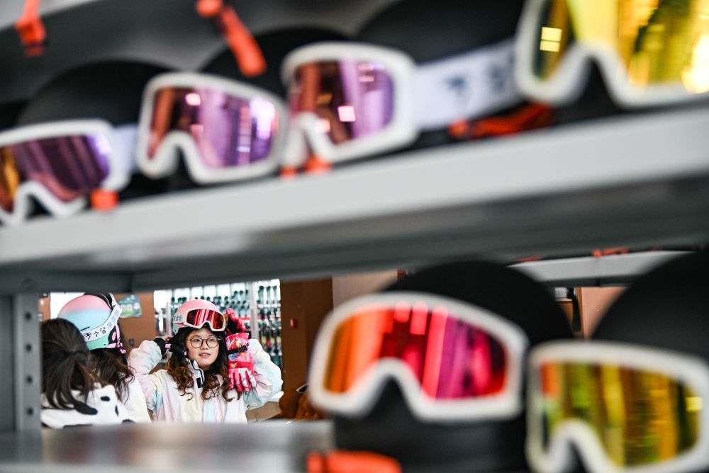 2024年12月27日,滑雪愛(ài)好者在四川省阿壩藏族羌族自治州汶川縣羌人谷滑雪場(chǎng)租賃滑雪裝備。