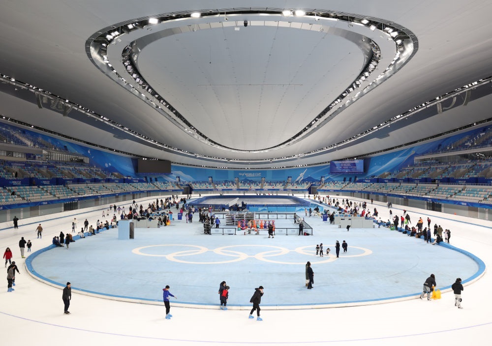 2025年1月4日,游客在國(guó)家速滑館體驗(yàn)滑冰。2024至2025雪季,國(guó)家體育場(chǎng)“鳥(niǎo)巢”歡樂(lè)冰雪季、國(guó)家速滑館“冰絲帶”冰雪狂歡季等活動(dòng)相繼開(kāi)展,吸引了眾多游客。