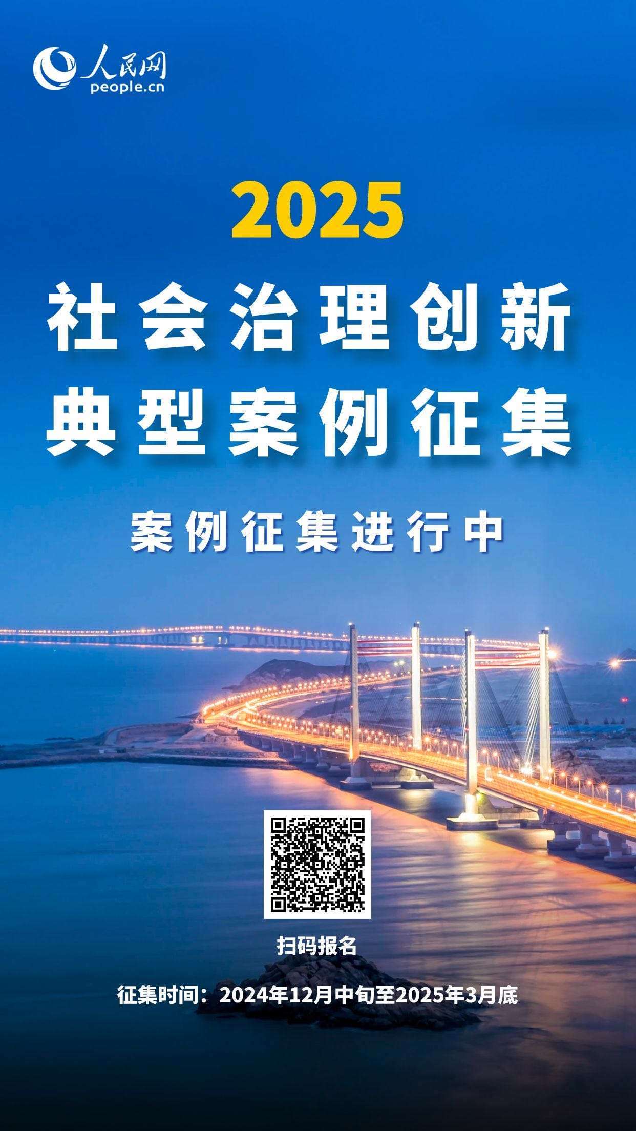 社會治理是國家治理的重要組成部分。為進(jìn)一步發(fā)掘各地在社會治理領(lǐng)域的創(chuàng)新實踐,總結(jié)推廣先進(jìn)的社會治理方法和經(jīng)驗,人民網(wǎng)已于去年12月中旬啟動2025社會治理創(chuàng)新典型案例征集,擬至2025年3月底截止。誠邀各界積極參與,共筑社會治理現(xiàn)代化新篇章。