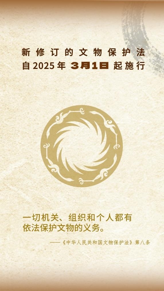 新華社北京3月1日電(記者施雨岑、胡夢雪)十四屆全國人大常委會第十二次會議2024年11月8日表決通過新修訂的文物保護法,自2025年3月1日起施行。記者3月1日從國家文物局獲悉,為切實做好相關(guān)工作,中共中央宣傳部、文化和旅游部、國家文物局、司法部、住房城鄉(xiāng)建設(shè)部、全國普法辦公室近日聯(lián)合印發(fā)關(guān)于學(xué)習宣傳貫徹《中華人民共和國文物保護法》的通知。