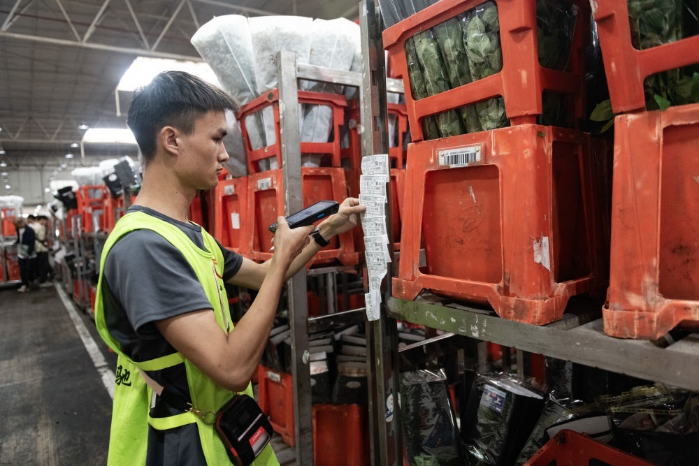 2022年11月11日,工作人員在昆明斗南花市給鮮花貼標(biāo)簽??爝f物流時(shí)效不斷優(yōu)化、冷鏈運(yùn)輸技術(shù)持續(xù)提升,也為中國鮮花加速“出海”保駕護(hù)航。