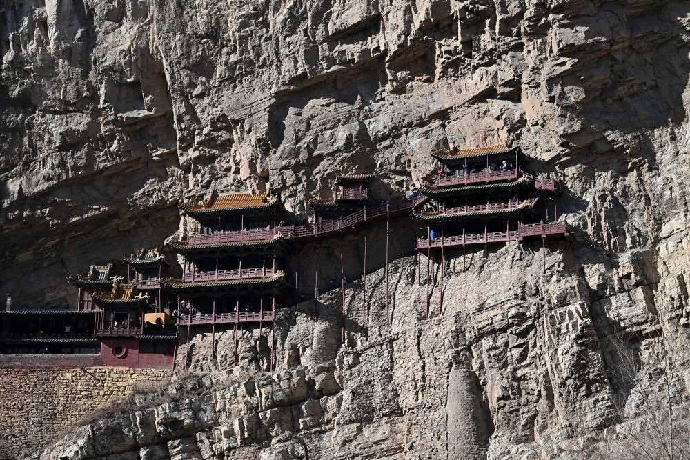 山西大同懸空寺位于恒山腳下,始建于北魏后期,迄今已有1500多年的歷史(2025年2月28日攝)。
