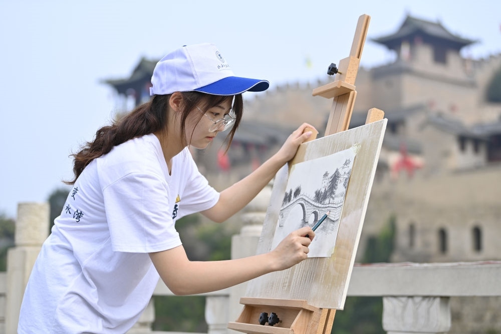 2024年7月10日,山西科技學(xué)院的學(xué)生在湘峪古堡寫(xiě)生。