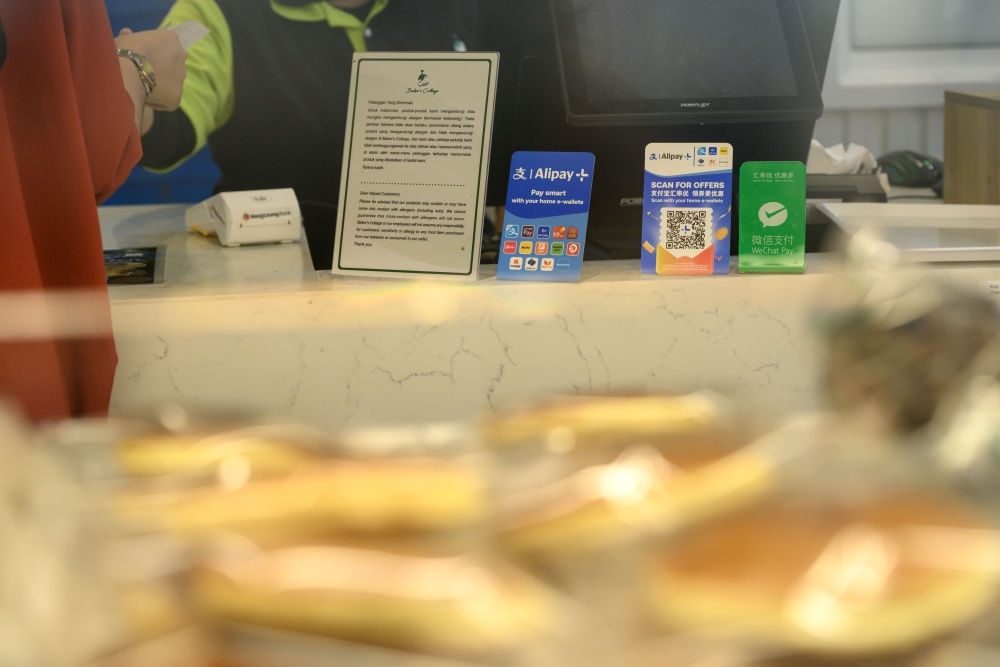 2025年4月10日,在馬來西亞吉隆坡,中國游客通過微信支付購買商品。