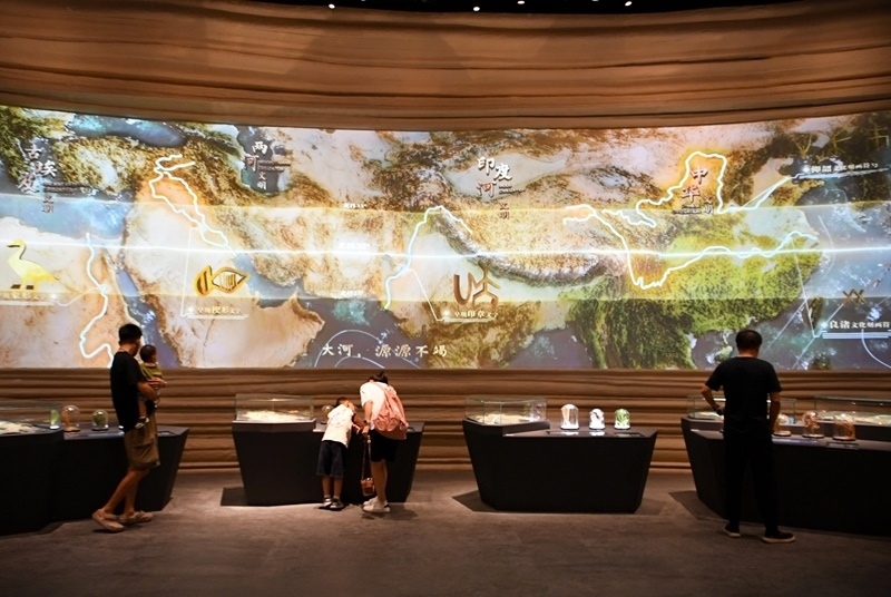 6月14日,參觀者在大河村遺址博物館沉浸式參觀體驗。