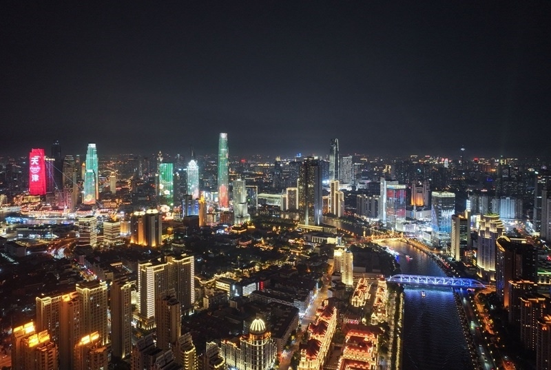 世界經(jīng)濟(jì)論壇第十六屆新領(lǐng)軍者年會(huì)(又稱(chēng)“夏季達(dá)沃斯論壇”)即將在天津開(kāi)幕。夜色下的天津燈光璀璨,多座地標(biāo)性建筑點(diǎn)亮樓體燈光,流光溢彩迎接中外賓朋。
