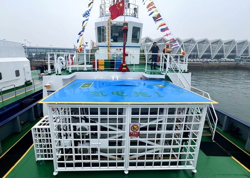 6月26日,國內(nèi)首艘氫電拖輪——“氫電拖1”輪在山東港口青島港入列。該拖輪搭載“氫燃料電池+液冷鋰電池”混動系統(tǒng),可實現(xiàn)零碳排放。據(jù)介紹,與傳統(tǒng)燃油拖輪相比,“氫電拖1”輪在噪音控制、設(shè)備壽命、能源利用效率等方面優(yōu)勢顯著。該輪投產(chǎn)后,預計每年可減少二氧化碳排放1500余噸。