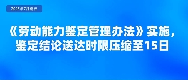 人力資源社會保障部、國家衛(wèi)生健康委聯(lián)合印發(fā)的《勞動能力鑒定管理辦法》,自2025年7月1日起施行?!掇k法》明確,工傷職工和因病或非因工致殘申請領(lǐng)取病殘津貼人員申請勞動能力鑒定適用本辦法。勞動能力鑒定分為初次鑒定和再次鑒定,對初次鑒定不服可以申請再次鑒定,再次鑒定為最終結(jié)論?!掇k法》強調(diào),要加強便民服務(wù),減少不必要材料,信息共享能夠獲取的申請材料不得要求申請人重復(fù)提交;壓縮鑒定時限,將結(jié)論送達時限從20日壓縮至15日;加強無障礙環(huán)境建設(shè),完善無障礙服務(wù)設(shè)施設(shè)備。