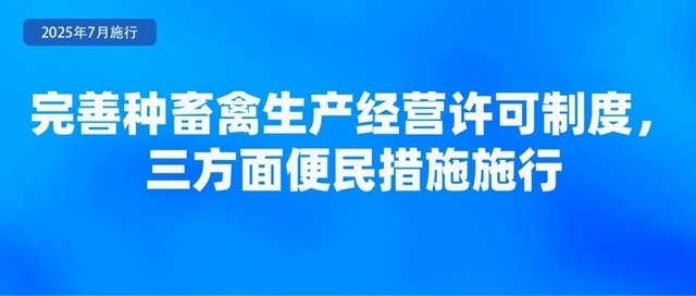 農(nóng)業(yè)農(nóng)村部公布了《種畜禽生產(chǎn)經(jīng)營許可管理辦法》,于2025年7月1日起實施?!掇k法》規(guī)定了三方面便民措施。一是統(tǒng)一平臺辦理。種畜禽生產(chǎn)經(jīng)營許可證的申請、受理、審核、核發(fā),統(tǒng)一在中國種業(yè)大數(shù)據(jù)平臺辦理,平臺提供查詢、核驗等功能,并與全國一體化在線政務(wù)服務(wù)平臺對接。二是統(tǒng)一有效期?!掇k法》將有效期統(tǒng)一確定為5年,并明確已取得的種畜禽生產(chǎn)經(jīng)營許可證有效期不變,到期后按照新規(guī)定辦理。三是簡化變更手續(xù)。對變更生產(chǎn)經(jīng)營者名稱、法定代表人(負(fù)責(zé)人)以及從事父母代種畜禽(含品種和配套系)和商品代仔畜、雛禽生產(chǎn)經(jīng)營,需要變更其生產(chǎn)經(jīng)營的畜禽品種的,向原發(fā)證機關(guān)提交變更申請表及證明材料,符合條件的,原發(fā)證機關(guān)在十五個工作日內(nèi)即予以變更。