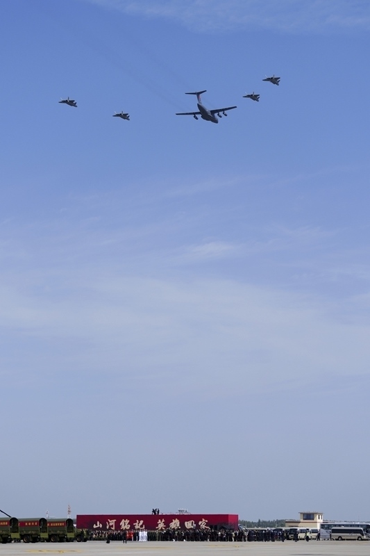 9月12日,第十二批在韓中國(guó)人民志愿軍烈士遺骸回國(guó)。這是在沈陽桃仙國(guó)際機(jī)場(chǎng),接運(yùn)烈士遺骸回國(guó)的運(yùn)-20專機(jī)在4架殲-20飛機(jī)伴飛護(hù)航下即將降落。