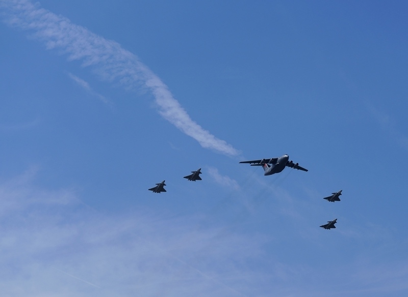 9月12日,第十二批在韓中國(guó)人民志愿軍烈士遺骸回國(guó)。這是為接運(yùn)烈士遺骸回國(guó)的運(yùn)-20專機(jī)伴飛護(hù)航的殲-20飛機(jī)。