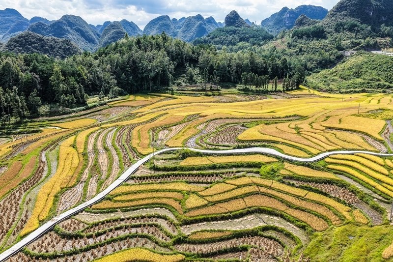 長順縣長寨街道中塘村的梯田風(fēng)光(9月17日攝,無人機照片)。