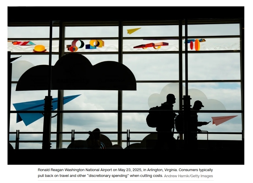 對(duì)于像威爾伯恩這樣的家庭來(lái)說(shuō),春季的瘋狂消費(fèi)是對(duì)抗不確定性的“豪賭”,可能需要多年的精打細(xì)算來(lái)償還債務(wù)。如今背負(fù)新債的美國(guó)人正縮減消費(fèi),尤其是餐飲、旅行等非必需支出。美國(guó)金融服務(wù)網(wǎng)站銀率網(wǎng)(Bankrate)的調(diào)查顯示,54%的美國(guó)成年人計(jì)劃減少此類消費(fèi),高于去年的49%。商務(wù)部數(shù)據(jù)也印證了這一情況,五月份餐館和酒吧的零售支出下降了0.9%,這是自二月以來(lái)的首次月度下降,也是自2023年2月以來(lái)的最大降幅。