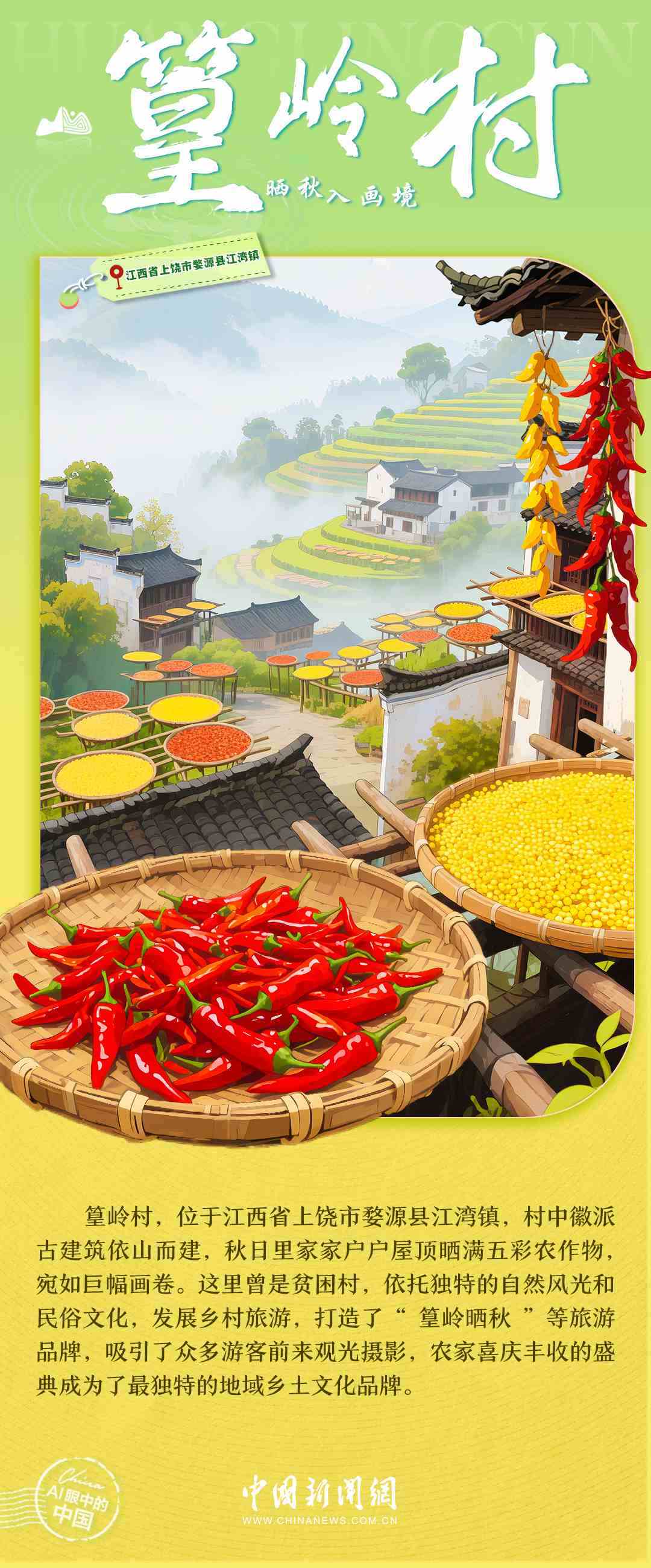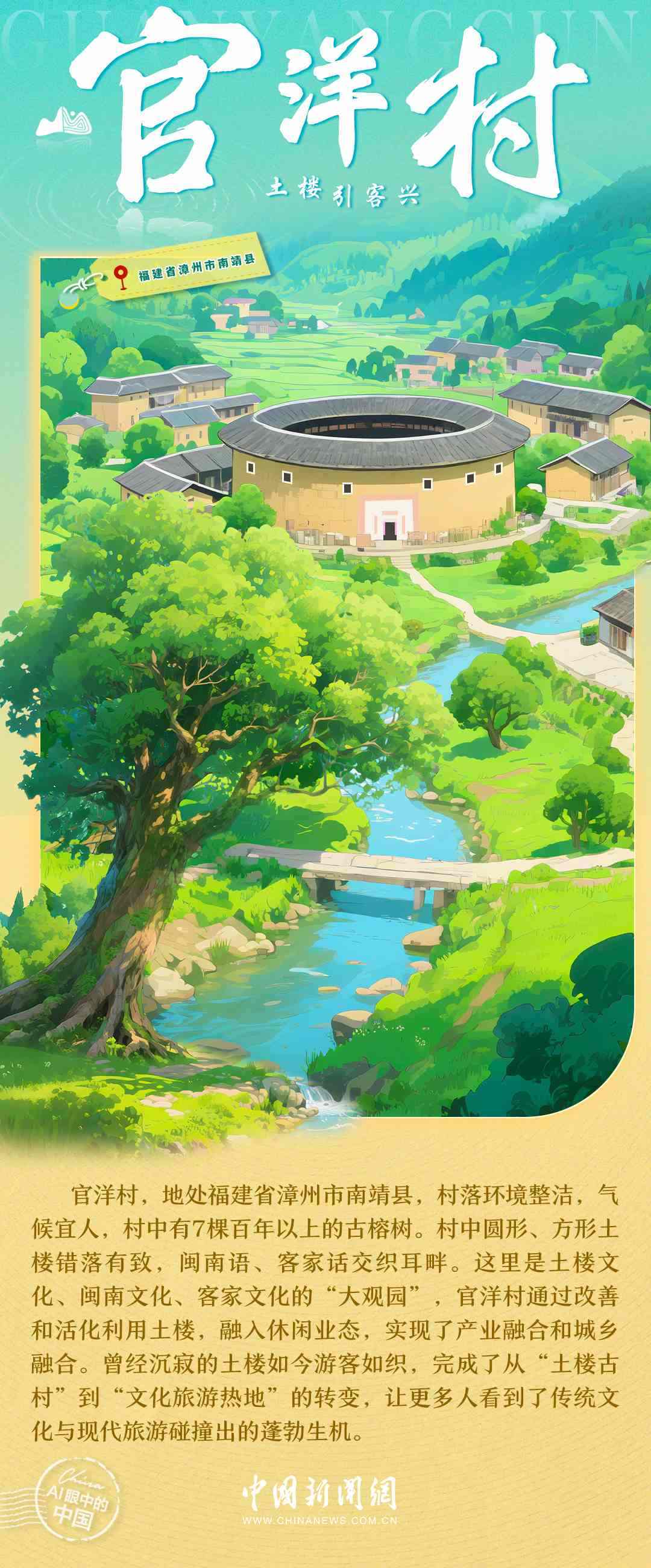梯田的清晨,竹海的風(fēng),土樓的煙火,古寨的傍晚……中國鄉(xiāng)村正描繪出一幅產(chǎn)業(yè)興旺、生態(tài)宜居、鄉(xiāng)風(fēng)文明的時代畫卷。每一處風(fēng)景,都是中國鄉(xiāng)村全面振興的生動注腳,每一段故事,都是探索全球鄉(xiāng)村發(fā)展路徑的中國實踐。7月6日,世界農(nóng)村發(fā)展日,讓我們一起走進AI視野中的鄉(xiāng)村,去看看美麗中國的勃勃生機→