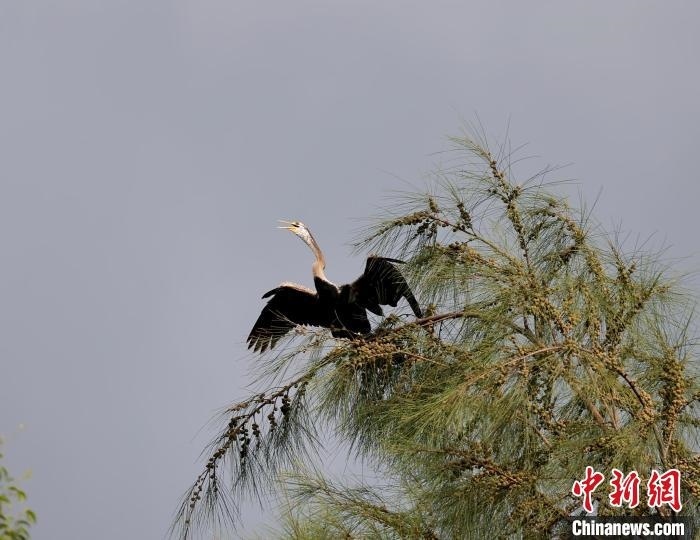 中新網(wǎng)海南昌江7月13日電(陳英清)近日,海南昌江海尾國(guó)家濕地公園記錄到1只黑腹蛇鵜。經(jīng)海南省鳥(niǎo)類記錄中心專家確認(rèn),這是海南省首次記錄到該鳥(niǎo)種。黑腹蛇鵜已被《世界自然保護(hù)聯(lián)盟瀕危物種紅色名錄》(IUCN)列為近危(NT)物種。