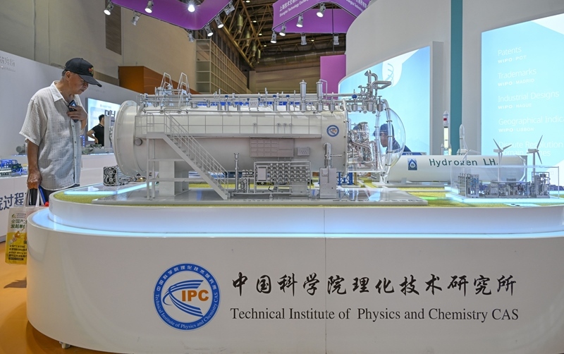 7月17日在先進(jìn)制造鏈展區(qū)創(chuàng)新鏈專區(qū)拍攝的中國科學(xué)院理化技術(shù)研究所自主研制的國內(nèi)首套5噸/天氫液化器模型。