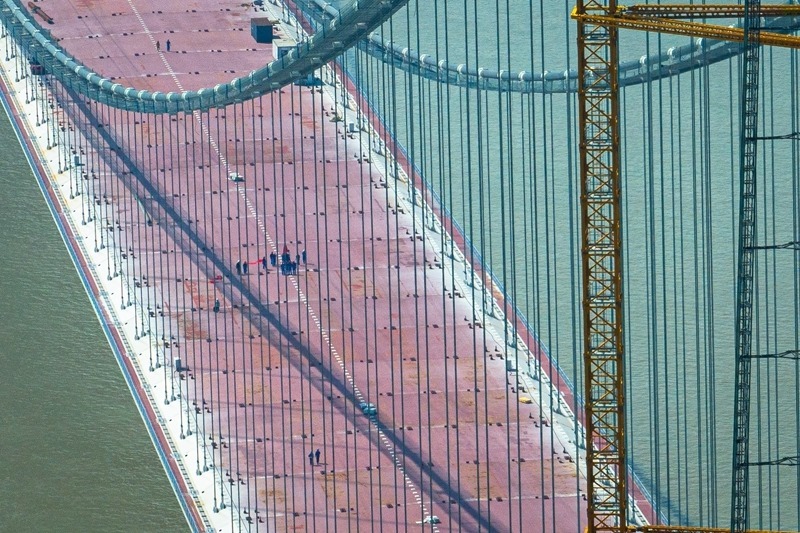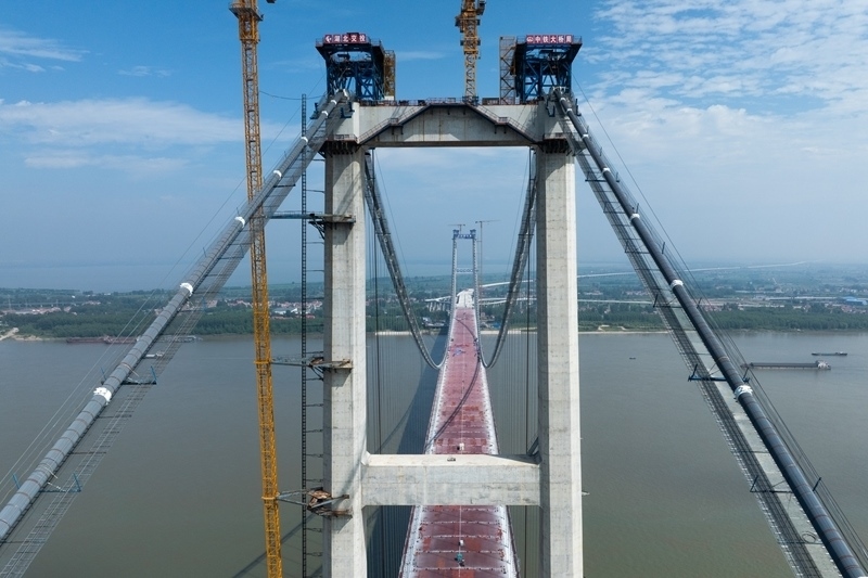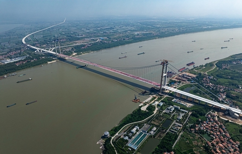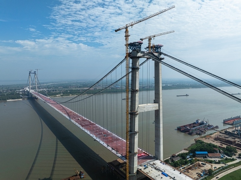 據(jù)了解,新港高速公路武漢雙柳長江大橋及接線工程是國家高速路網(wǎng)武漢都市圈環(huán)線重要組成部分,路線全長35.043公里,其中跨江主橋主跨1430米、寬50.5米,設(shè)計(jì)時速120公里,采用雙向8車道設(shè)計(jì),是目前長江上在建的最寬鋼箱梁懸索橋。