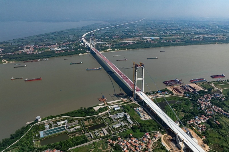 7月26日拍攝的合龍后的雙柳長江大橋(無人機(jī)照片)。