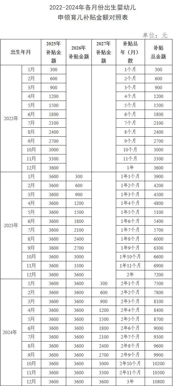其中,對(duì)2025年1月1日之前出生、不滿3周歲的嬰幼兒,按應(yīng)補(bǔ)貼月數(shù)折算計(jì)發(fā)補(bǔ)貼。也就是說(shuō),2022年1月1日以后出生的符合條件的嬰幼兒,都可以領(lǐng)取育兒補(bǔ)貼。