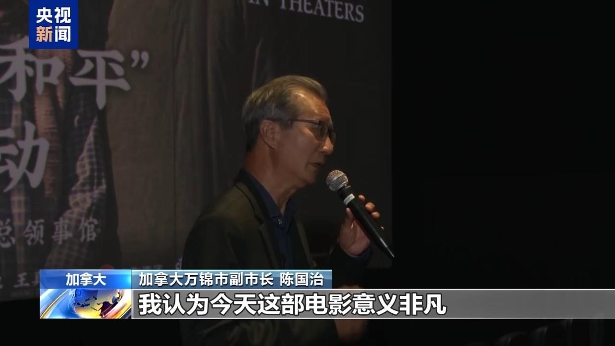中國駐溫哥華代總領事曾智也出席了首映式。曾智強調,牢記歷史的經(jīng)驗和教訓,絕不是為了延續(xù)仇恨,而是為了以史為鑒,尊重歷史,維護和平。曾智表示,中加兩國在二戰(zhàn)期間曾經(jīng)在東方戰(zhàn)場并肩攜手作戰(zhàn),真誠希望與領區(qū)各界一道,銘記歷史,珍愛和平,緬懷先烈,開創(chuàng)未來,共同秉持正確的二戰(zhàn)史觀,共同維護戰(zhàn)后的國際秩序,捍衛(wèi)國際的公平正義,為人類的和平與發(fā)展,共同譜寫新的篇章。