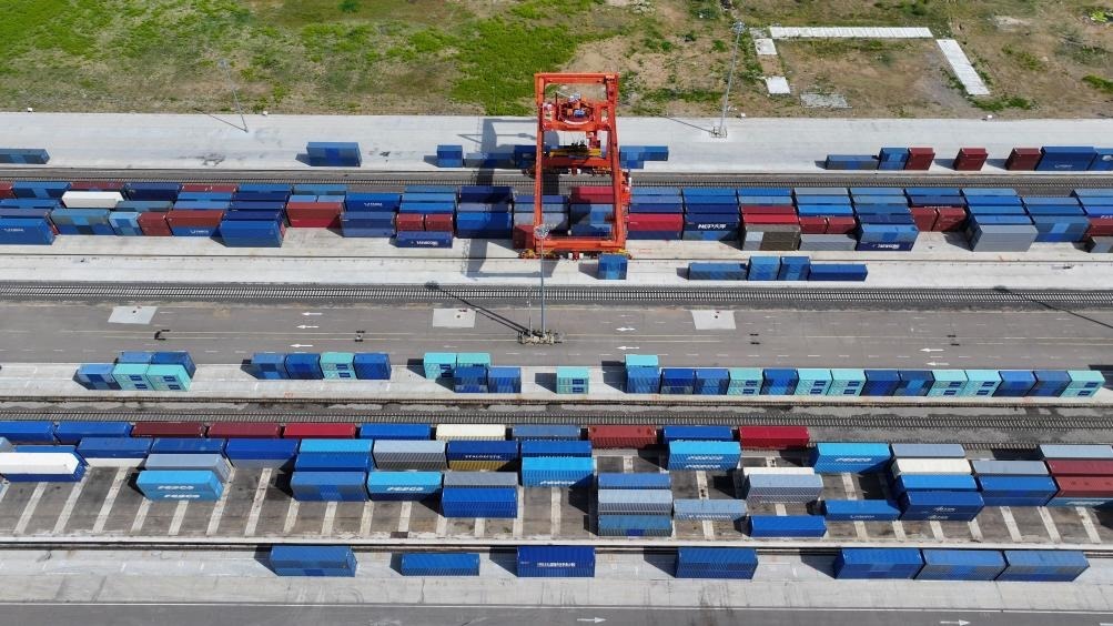 口岸站整齊擺放的集裝箱。(中國鐵路哈爾濱局集團(tuán)有限公司供圖)