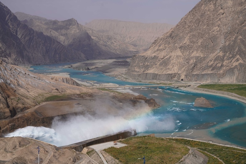 阿爾塔什水利樞紐工程位于新疆維吾爾自治區(qū)喀什地區(qū)莎車縣霍什拉甫鄉(xiāng)和克孜勒蘇柯爾克孜自治州阿克陶縣庫斯拉甫鄉(xiāng)交界處,是葉爾羌河山區(qū)控制性水利樞紐工程,總庫容22.49億立方米,設計年發(fā)電量21.86億千瓦時,是新疆目前規(guī)模最大的水利樞紐工程。該工程兼顧生態(tài)、防洪、灌溉、發(fā)電等功能,2021年8月建成投產以來,平均每年向塔里木河干流生態(tài)補水約3.3億立方米。該工程建成后,徹底解決了葉爾羌河千年水患,每年減少約1000萬人次的防洪投入;同時為南疆提供清潔能源,改善了南疆的電力短缺狀況。