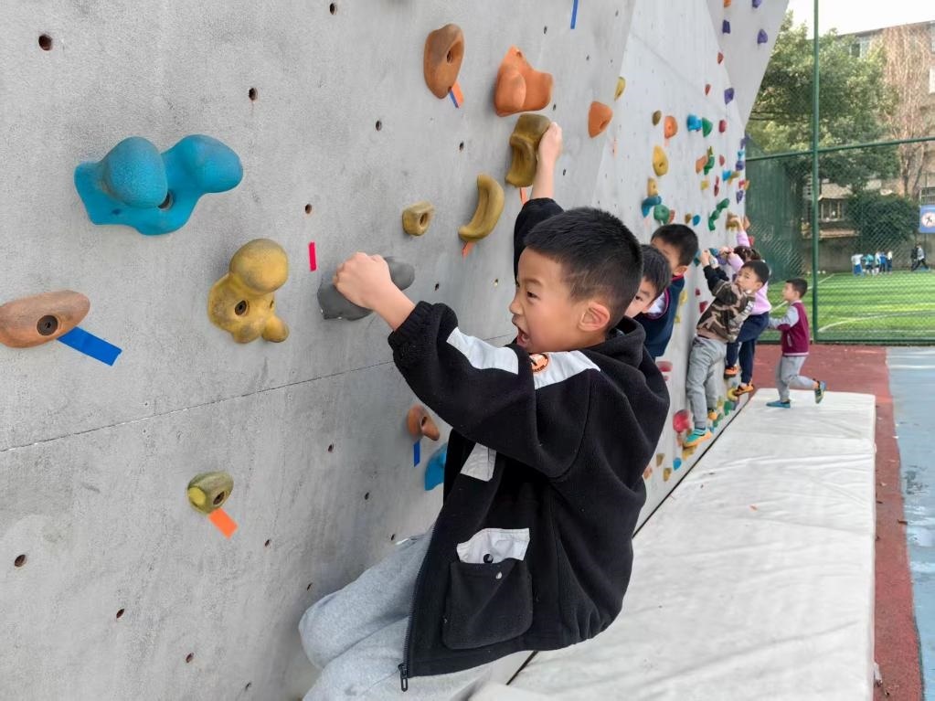在成華區(qū)嘉祥外國語學(xué)校的戶外攀巖場