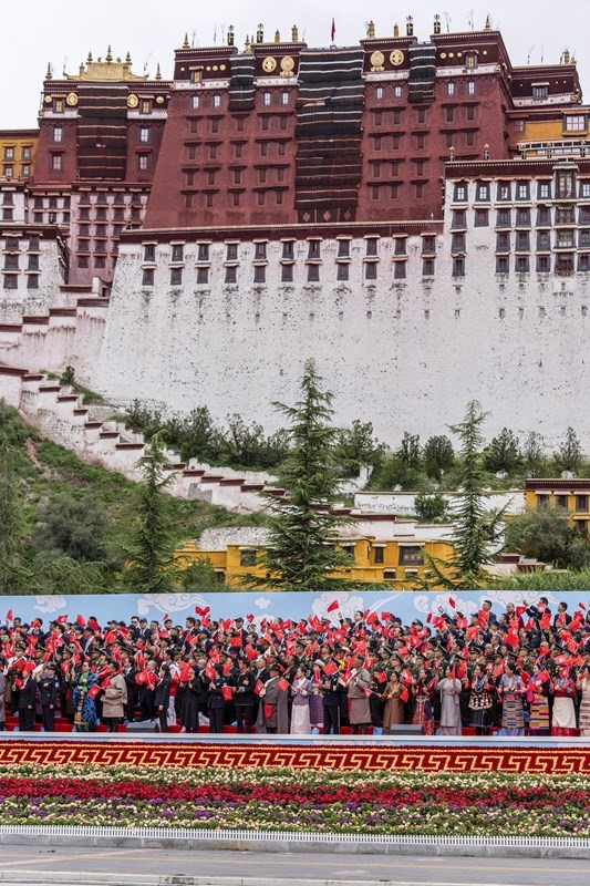 8月21日上午,西藏各族各界干部群眾約2萬人歡聚拉薩市布達(dá)拉宮廣場(chǎng),熱烈慶祝西藏自治區(qū)成立60周年。這是慶祝大會(huì)現(xiàn)場(chǎng)。