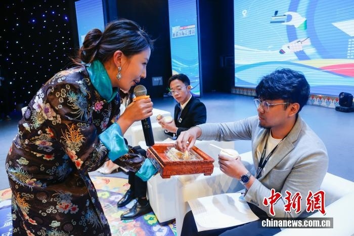 2024年8月18日,“同飲一江水 光影耀瀾湄”2024瀾湄國際影像周在青海省玉樹藏族自治州玉樹市正式啟動。圖為來自瀾滄江-湄公河流域國家的6名青年代表品嘗玉樹酸奶、奶酪等當(dāng)?shù)靥厣r(nóng)畜產(chǎn)品。中新社記者 馬銘言 攝