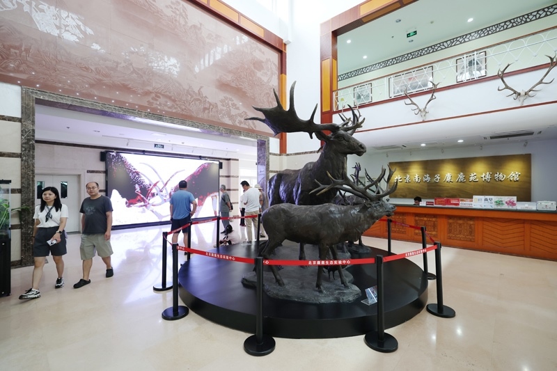 8月24日,游客在北京南海子麋鹿苑博物館參觀。