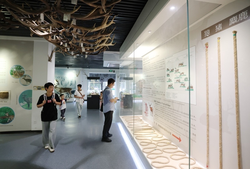 8月24日,游客在北京南海子麋鹿苑博物館參觀了解麋鹿相關(guān)知識(shí)。