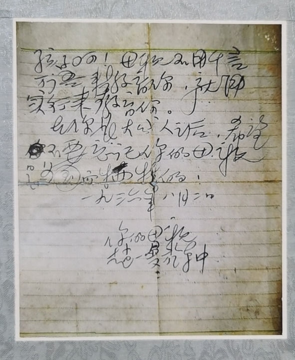 陳掖賢(寧兒)抄寫的趙一曼的遺書。(受訪者供圖)