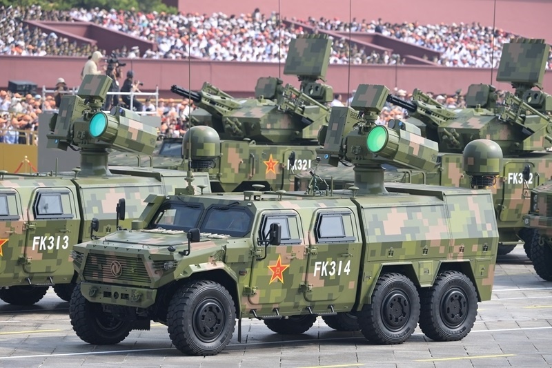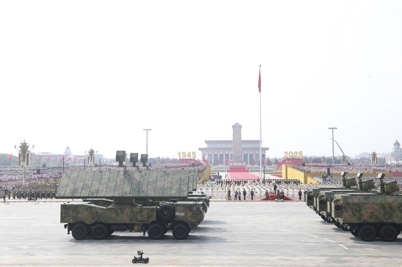9月3日,紀(jì)念中國人民抗日戰(zhàn)爭暨世界反法西斯戰(zhàn)爭勝利80周年大會在北京隆重舉行。這是艦載防空武器方隊(duì)接受檢閱。