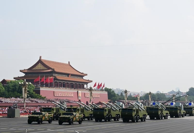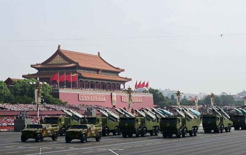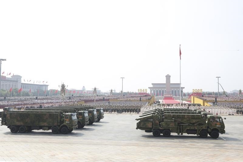 9月3日,紀念中國人民抗日戰(zhàn)爭暨世界反法西斯戰(zhàn)爭勝利80周年大會在北京隆重舉行。這是反艦導(dǎo)彈方隊接受檢閱。