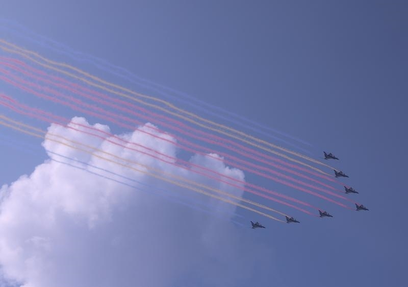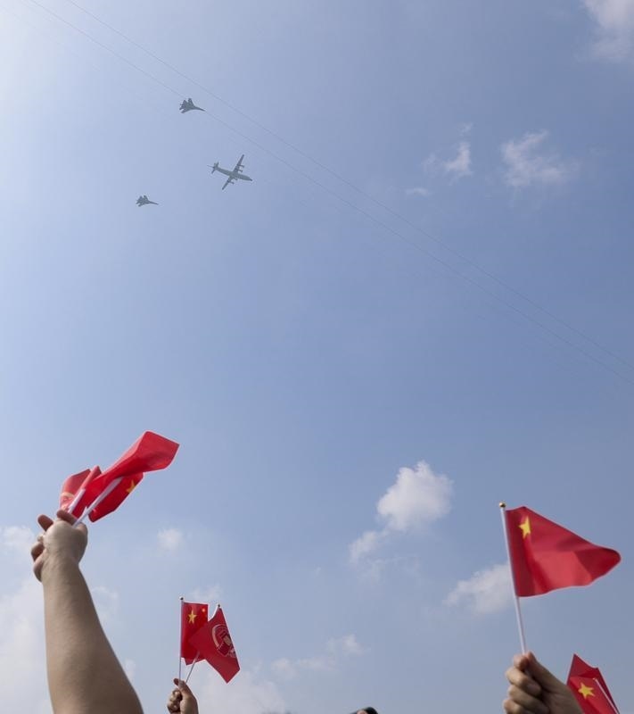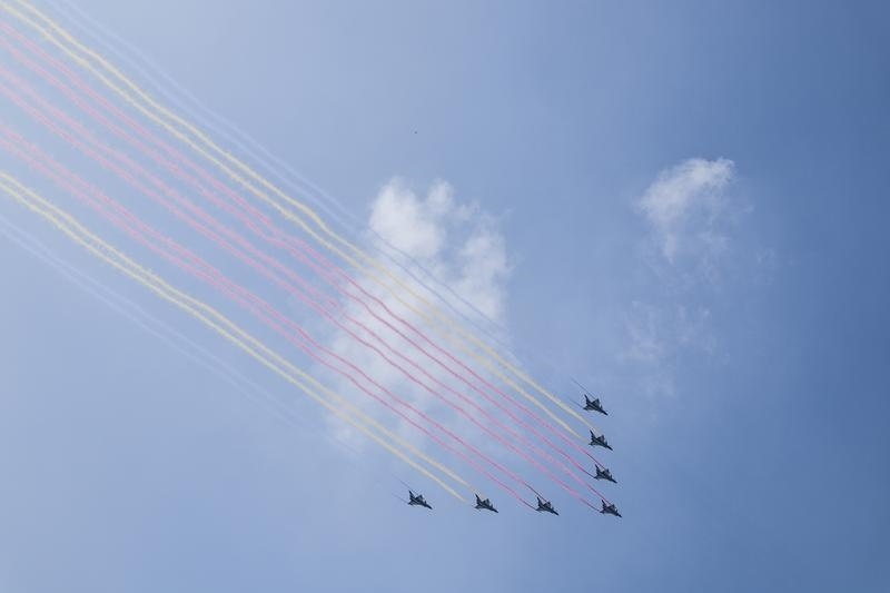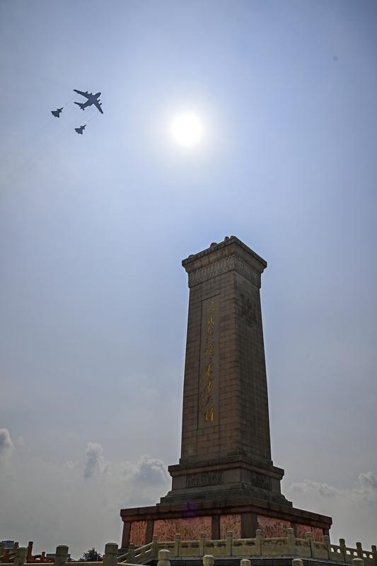 9月3日,紀念中國人民抗日戰(zhàn)爭暨世界反法西斯戰(zhàn)爭勝利80周年大會在北京隆重舉行。這是教練機梯隊接受檢閱。