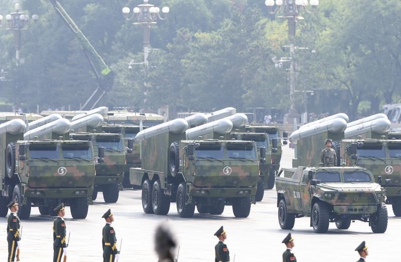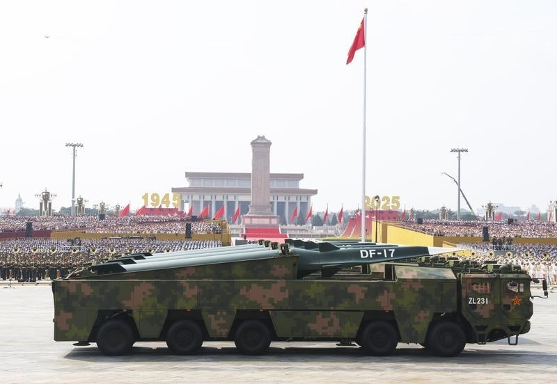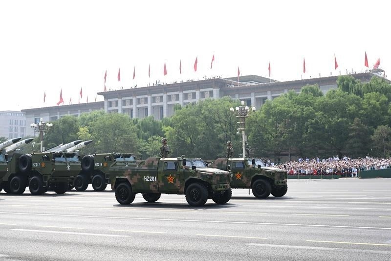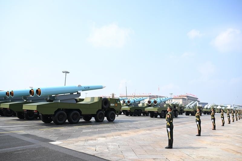 9月3日,紀(jì)念中國人民抗日戰(zhàn)爭暨世界反法西斯戰(zhàn)爭勝利80周年大會在北京隆重舉行。這是高超聲速導(dǎo)彈方隊接受檢閱。