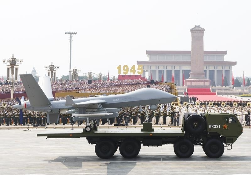 9月3日,紀(jì)念中國人民抗日戰(zhàn)爭暨世界反法西斯戰(zhàn)爭勝利80周年大會在北京隆重舉行。這是空中無人作戰(zhàn)方隊接受檢閱。