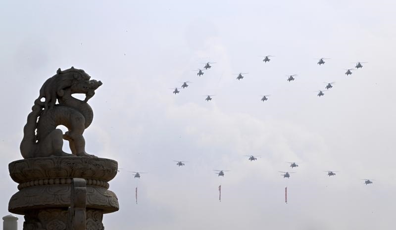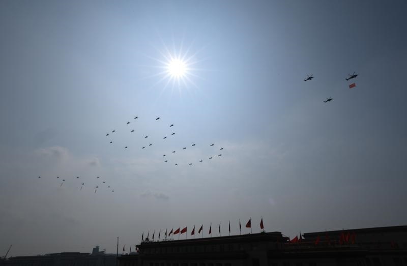 9月3日,紀(jì)念中國人民抗日戰(zhàn)爭暨世界反法西斯戰(zhàn)爭勝利80周年大會在北京隆重舉行。這是教練機梯隊接受檢閱。