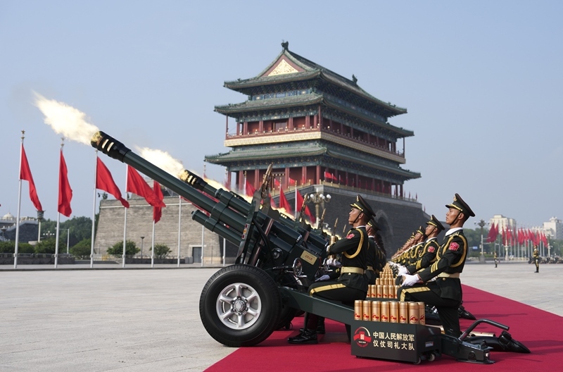 2025年9月3日,紀(jì)念中國(guó)人民抗日戰(zhàn)爭(zhēng)暨世界反法西斯戰(zhàn)爭(zhēng)勝利80周年大會(huì)在北京隆重舉行。這是禮炮在天安門(mén)廣場(chǎng)鳴響。新華社記者 牟宇 攝